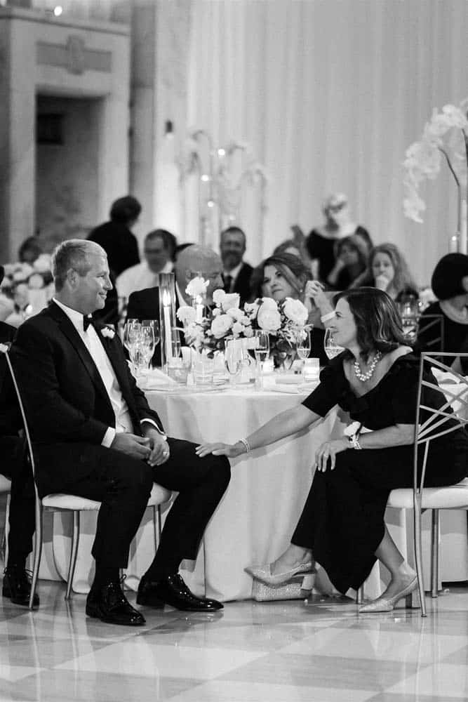 Perhaps the most memorable part of Cailey and Matt’s wedding day was the continuity with which the design carried over from ceremony to reception. The wedding platform wasn’t a fleeting backdrop, but an evening design feature. The elegance of the stage platform was echoed in the reception layout’s symmetry, and the gold and white color scheme carried over from vows to dinner to dancing. This mindful continuity provided visitors with the impression that they were being welcomed to one cohesive, immersive celebration.